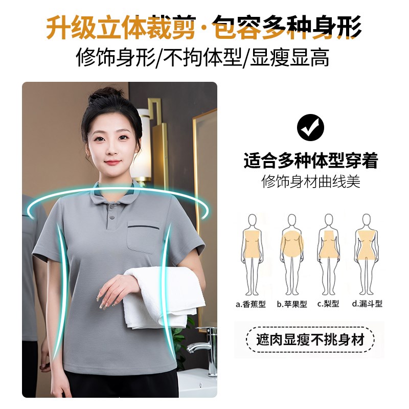 餐饮服务员工作服夏装T恤半袖定制酒店客房清洁员工装保洁食堂女