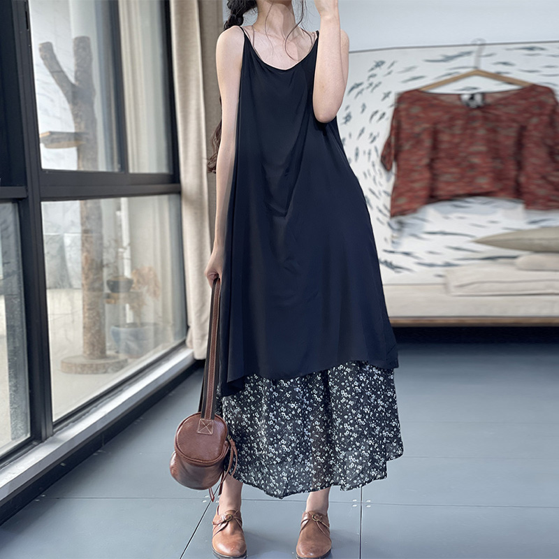 古与色夏季日系简约休闲百搭宽松中长款无袖纯棉打底吊带裙连衣裙