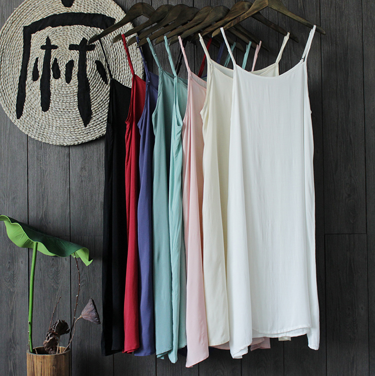 文艺复古真丝棉麻打底吊带背心衬裙苎麻宽松轻薄内衬中长连衣裙女