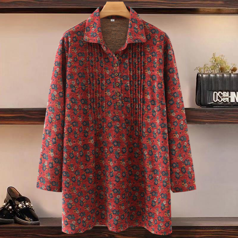 中长款碎花翻领宽松显瘦打底衫衬衫裙春装中老年妈妈棉麻上衣奶奶