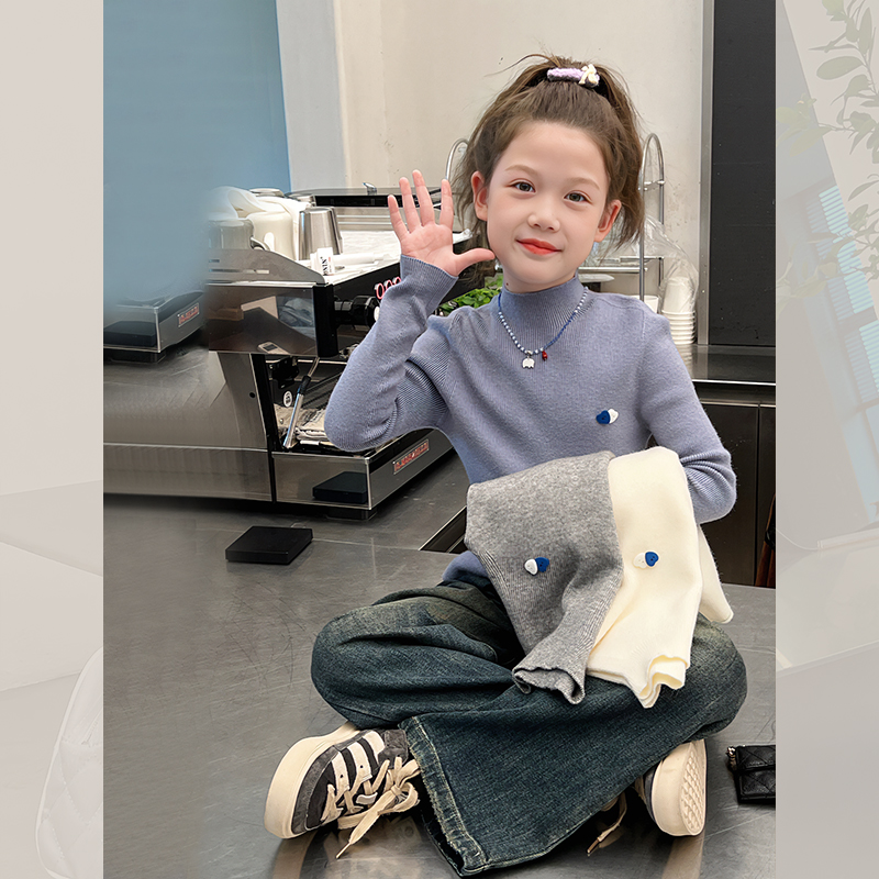女童半高领毛衣2025新款儿童羊毛衫混纺刺绣洋气女大童针织打底衫