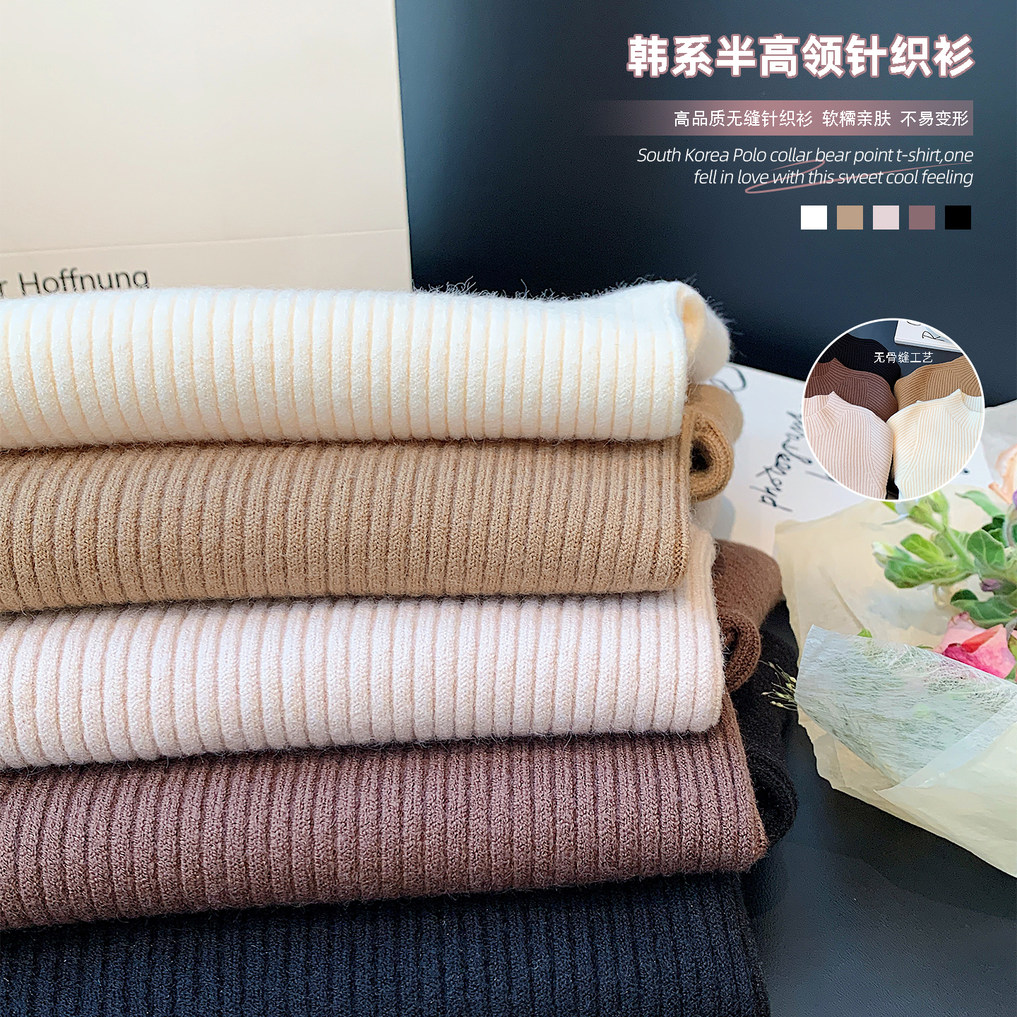 大码胖妹妹撞色半高领针织毛衣女春秋新款显瘦洋气内搭上衣打底衫