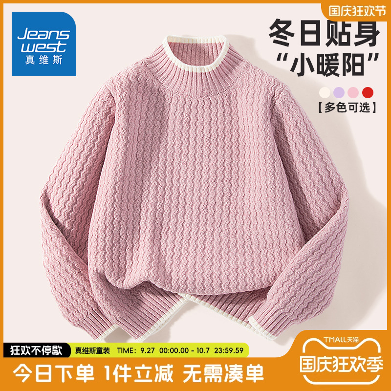真维斯童装女童毛衣2025新款大童秋冬打底衫儿童半高领加绒针织衫