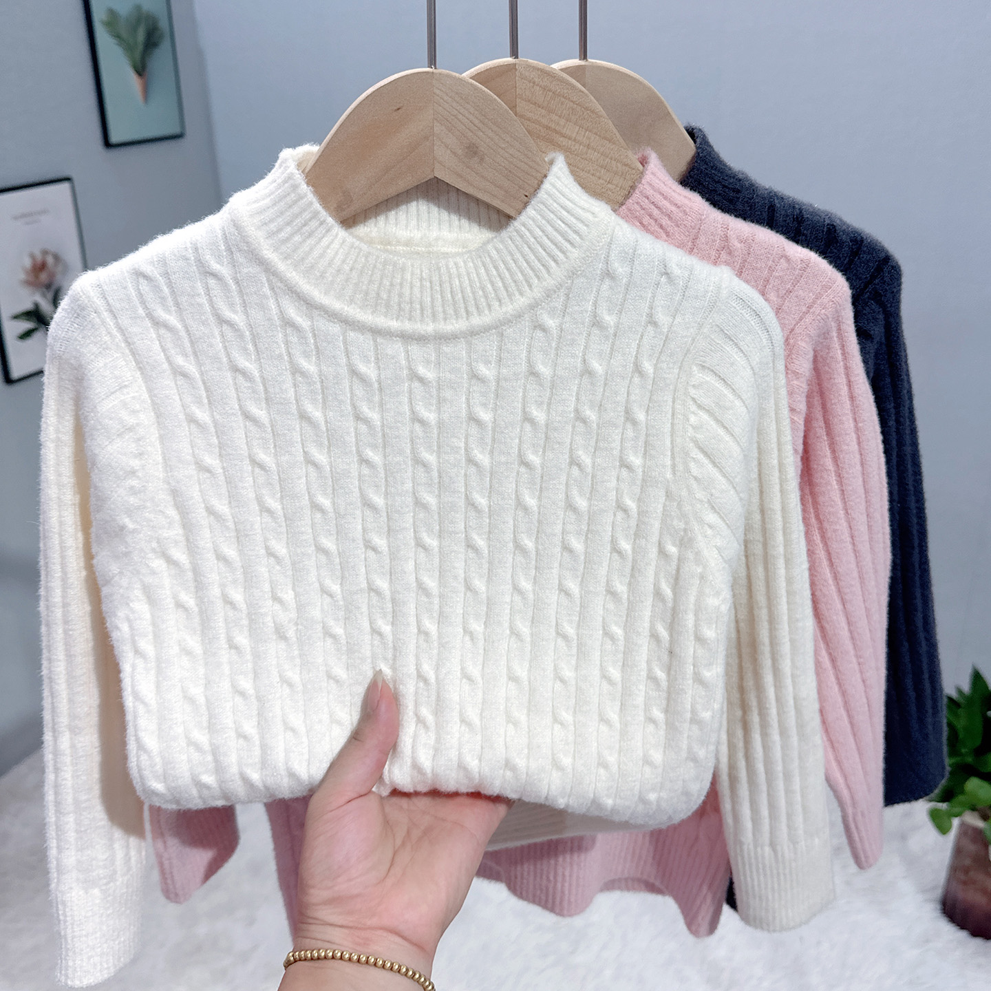 女童打底衫秋冬2025新款儿童一体绒半高领套头毛衣中大童针织衫女