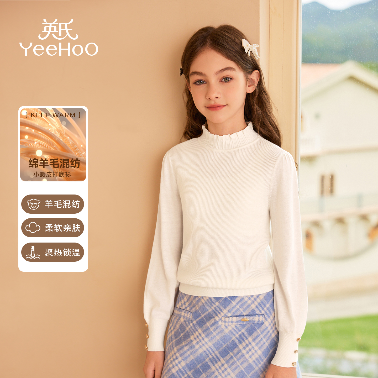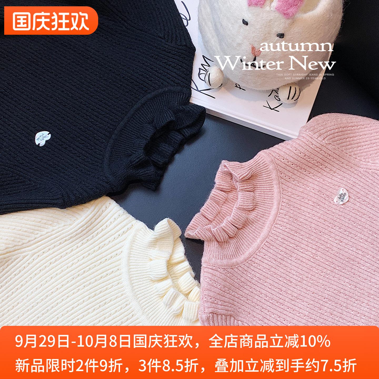 小童木 百搭好穿女童半高领毛衣秋冬新款荷叶袖中大童针织打底衫