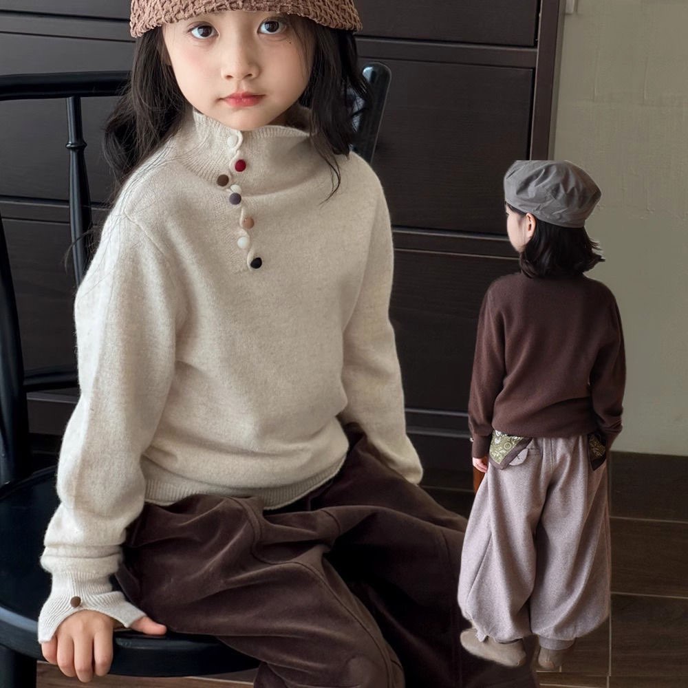 左西童装女童毛衣翻领半拉链儿童秋冬季2025新款女孩大童保暖线衣