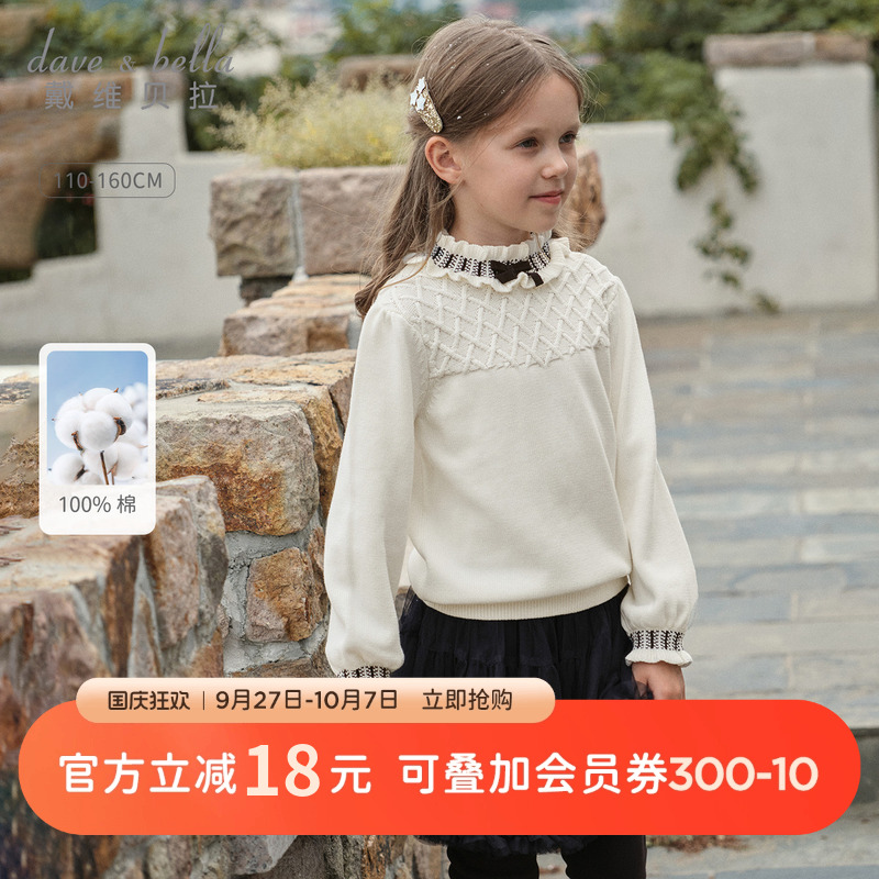 戴维贝拉儿童纯棉毛衣2025女童秋冬新款半高领针织衫中大童套头衫