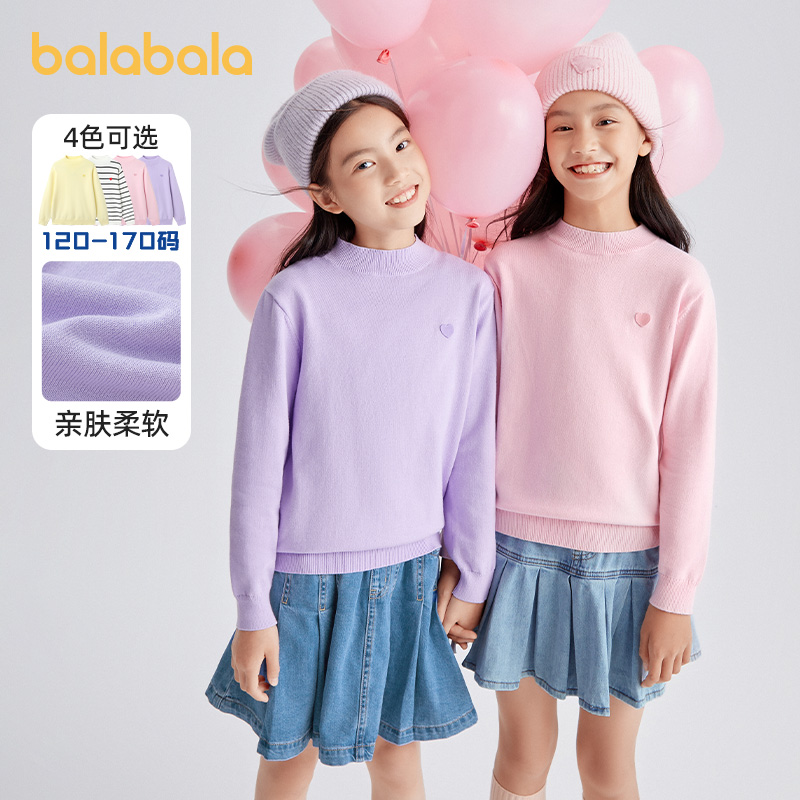 马拉丁童装儿童毛衣冬装新款女童大童半高领毛衣拷边细节舒适