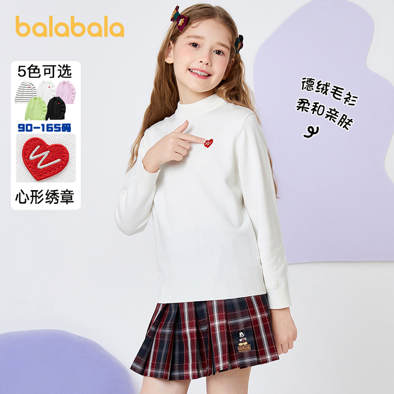 戴维贝拉儿童半高领毛衣套头衫2025冬季新款女童中大童长袖打底衫