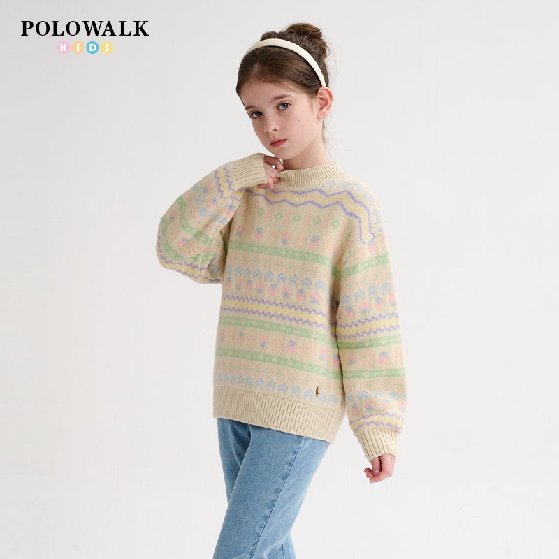 PISELLI史豌豆女童坑条半高领毛衣2025冬季新款中大童洋气针织衫