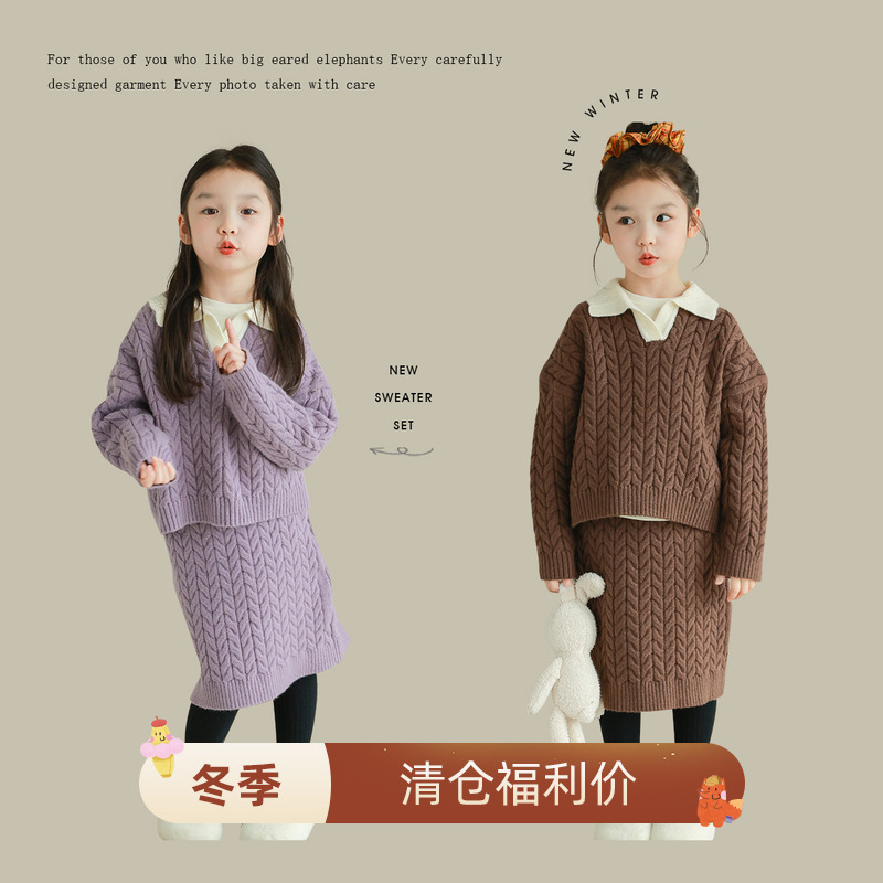 半度闲女童毛衣马甲三件套洋气秋冬装中大童25新款儿童冬季套装潮