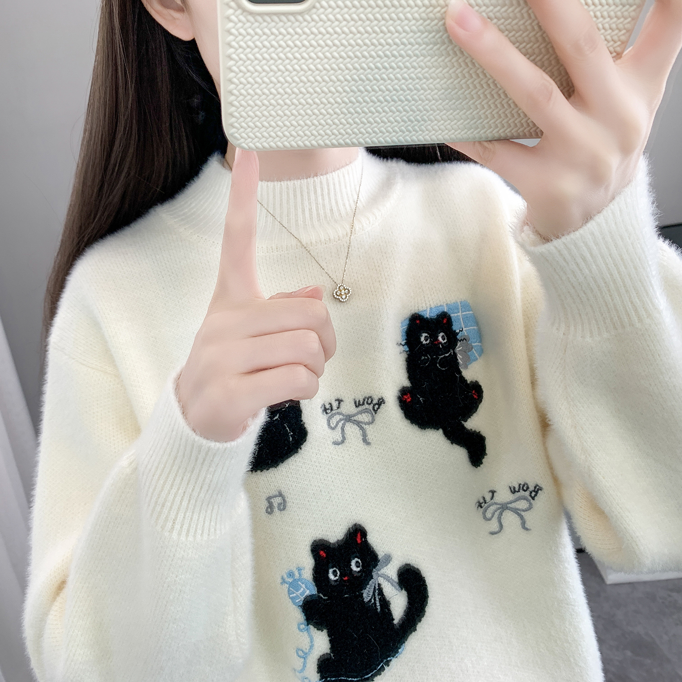 毛衣女秋冬季2025新款初中高中学生大童加厚保暖半高领水貂绒上衣