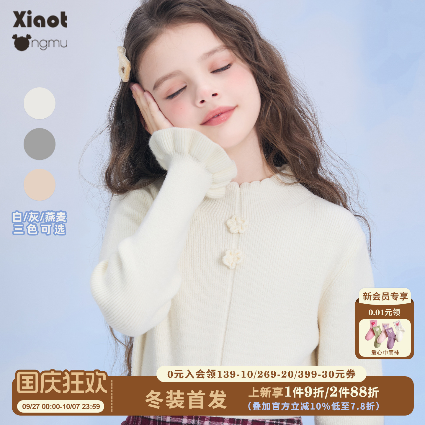 小童木 甜美彩扣刺绣女童毛衣冬季新款中大童半高领针织打底衫