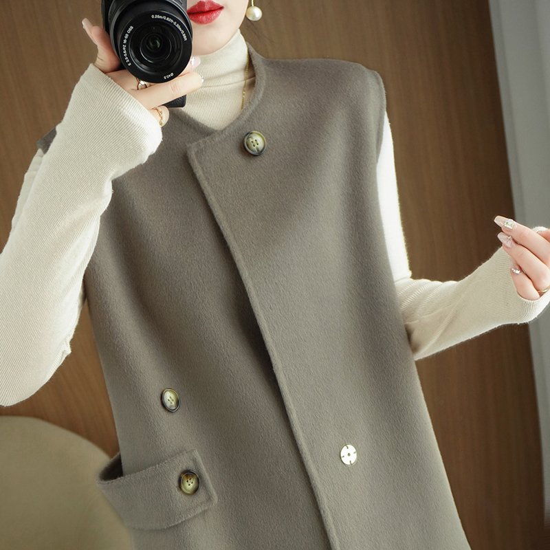 双面羊绒大衣女短款马甲秋冬新款修身毛呢外套内搭坎肩双面呢马夹