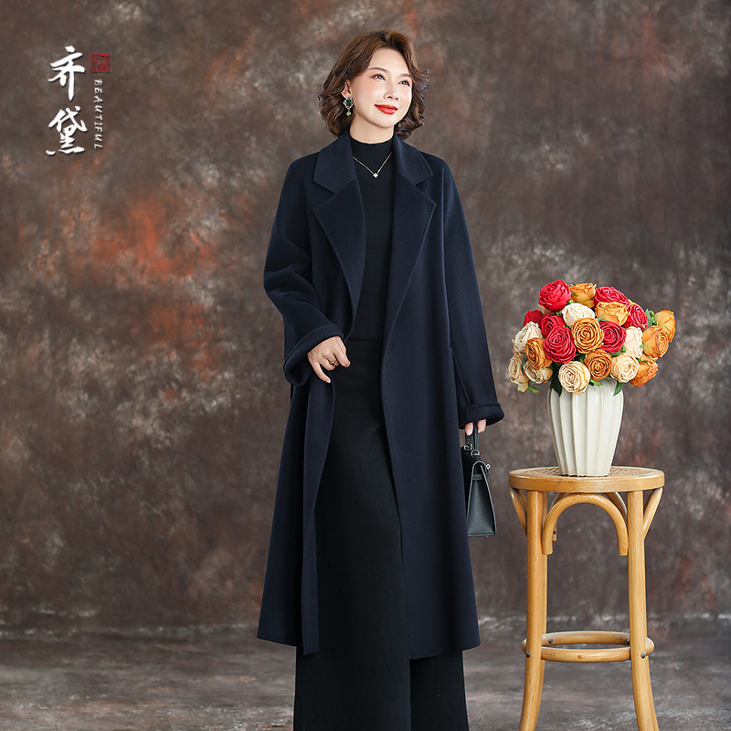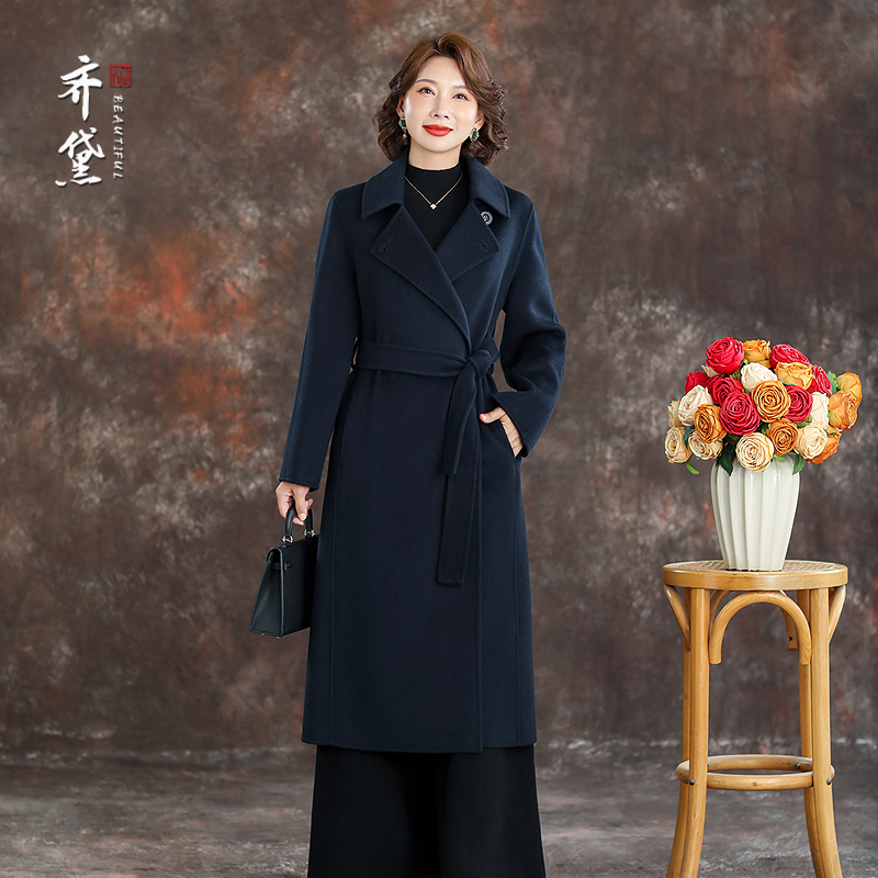 藏青色双面羊绒女大衣2025新款高端品牌妈妈中长款风衣羊毛呢外套