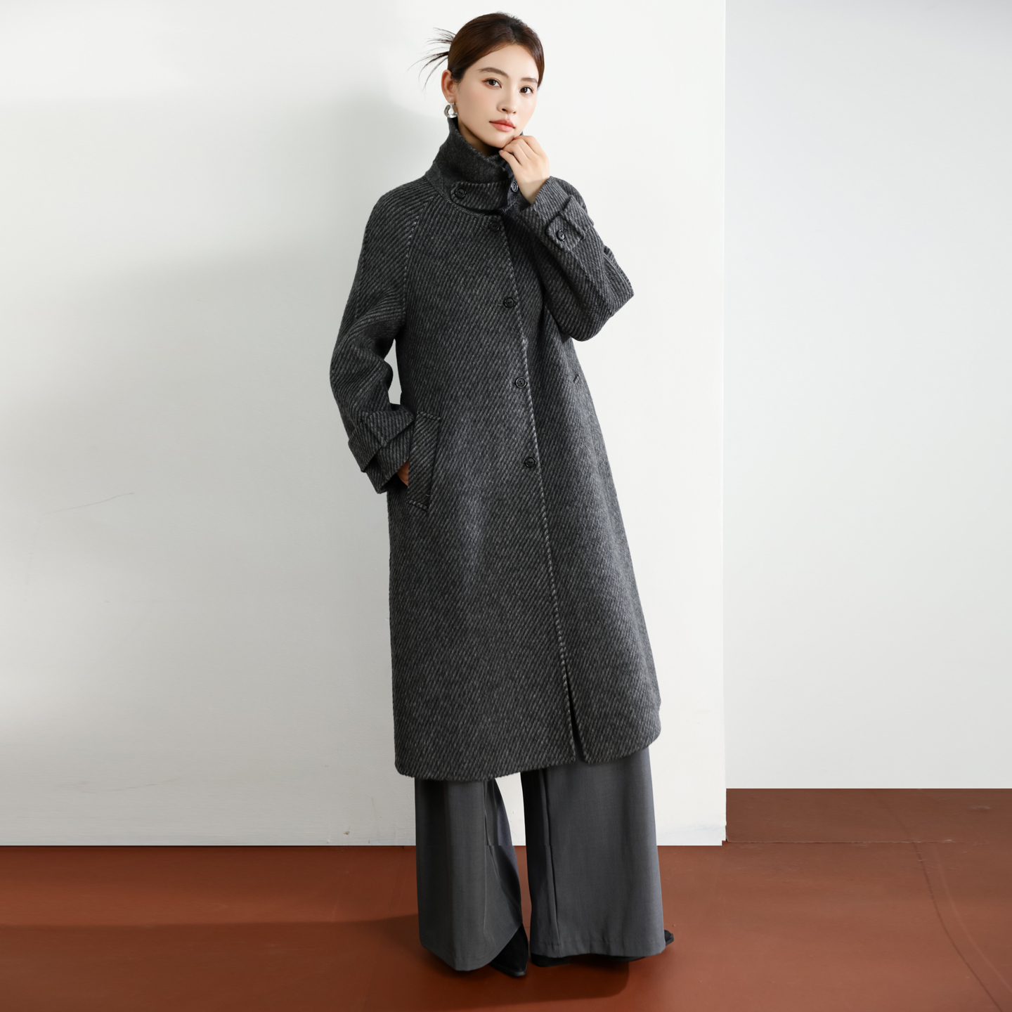 2025秋冬新款双面羊绒大衣女过膝立领气质欧货高级感羊毛呢长大衣