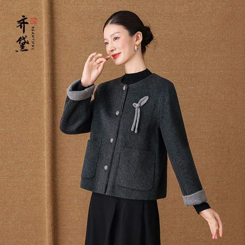 齐黛品牌大衣双面羊绒女2025冬新款加厚减龄妈妈短款羊毛呢子外套