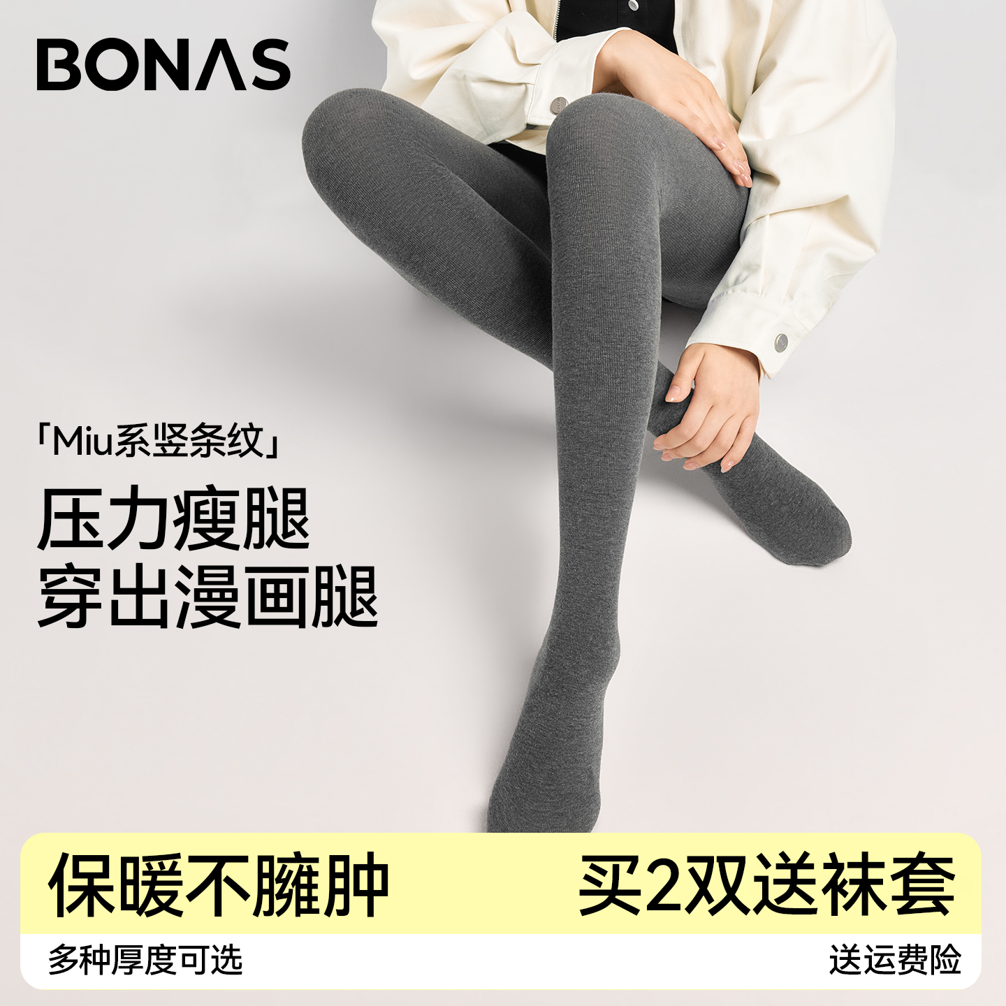 完美记忆打底裤女秋冬季深灰色外穿压力显瘦黑色连裤袜竖条纹加厚