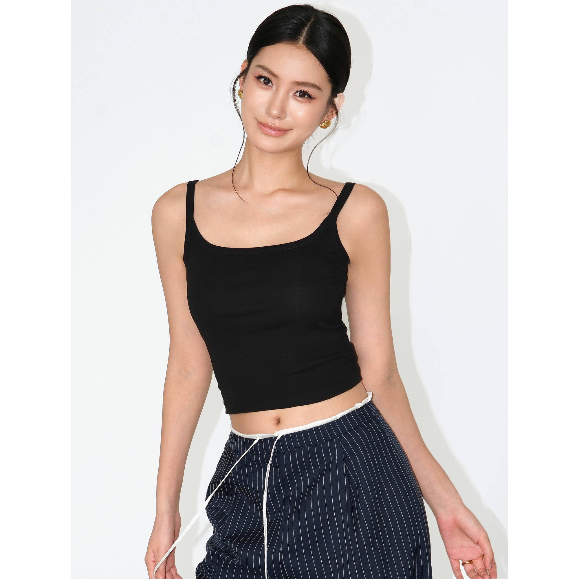 NEVA HU 黑色方领针织短款带胸垫吊带背心女外夏季内搭露背上衣
