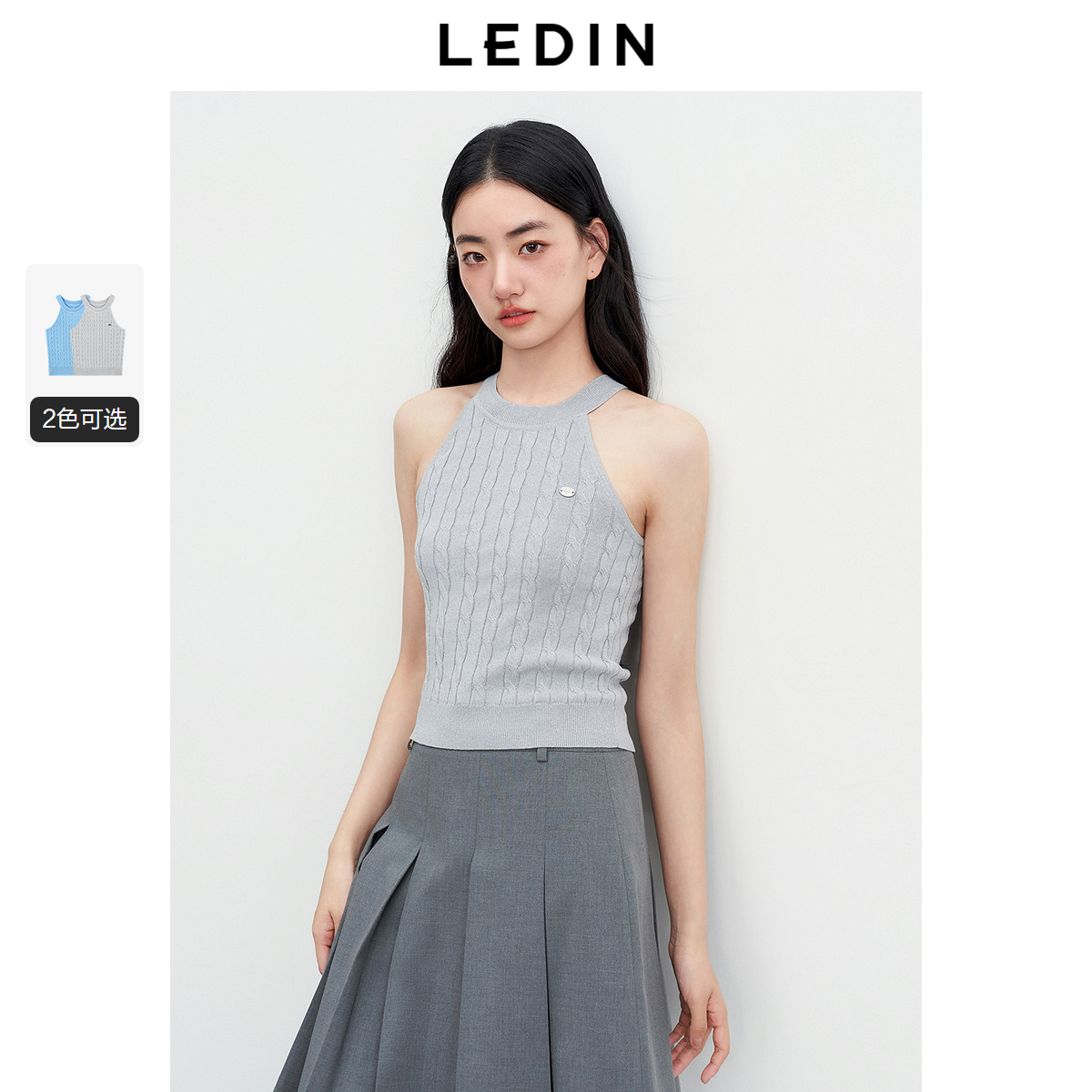 乐町绞花针织挂脖背心25年夏季新款女装遮肉显瘦天蚕丝短款背心