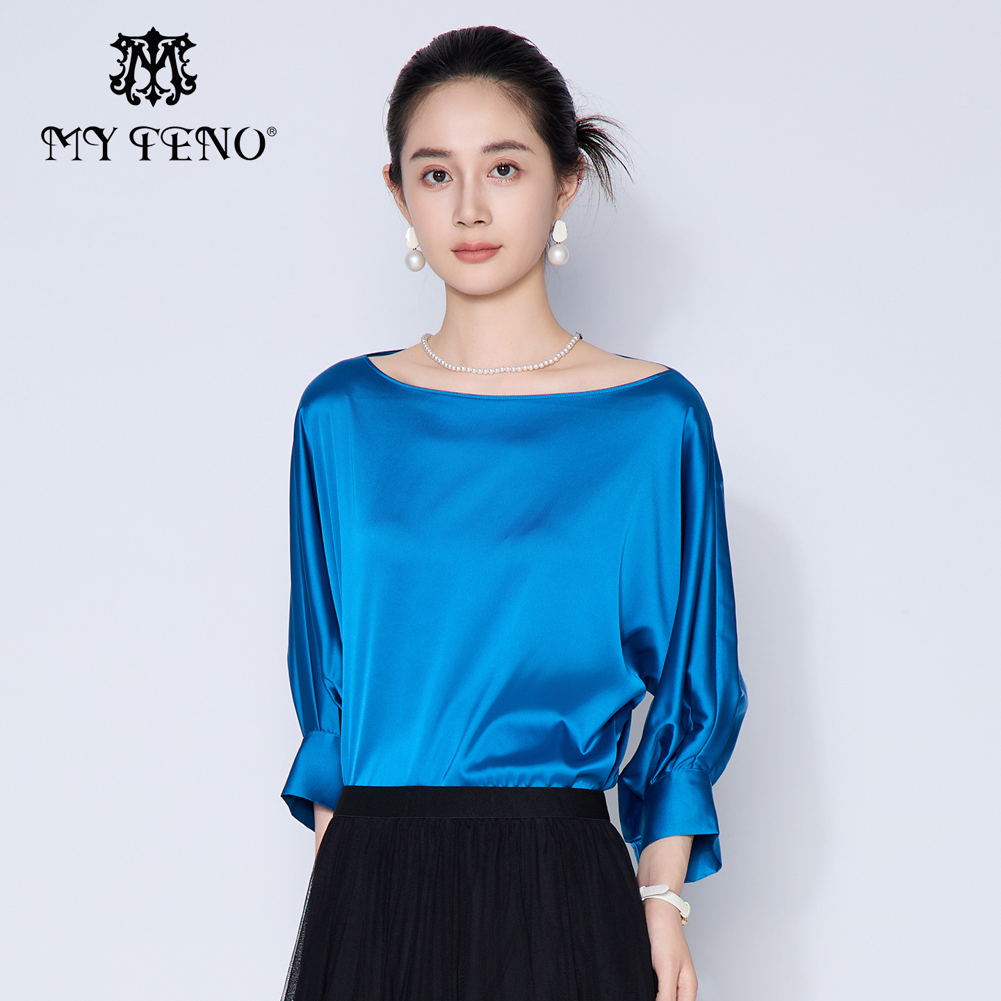 马天奴夏季新款一字领设计感衬衫五分袖气质女装短款上衣时尚百搭