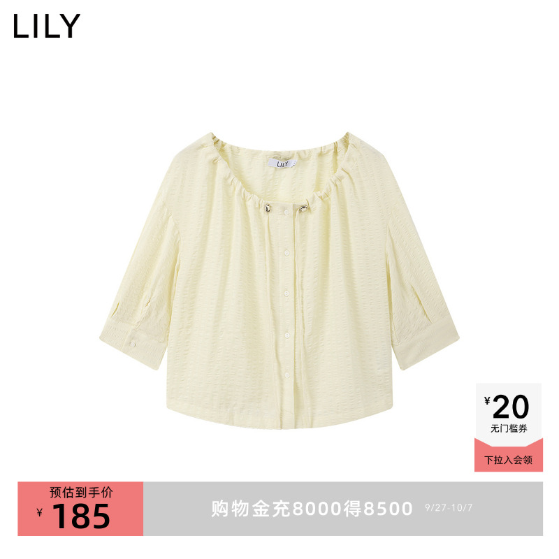 【垂顺亲肤】暇步士女装秋季休闲通勤亚麻透气宽松五分袖衬衫
