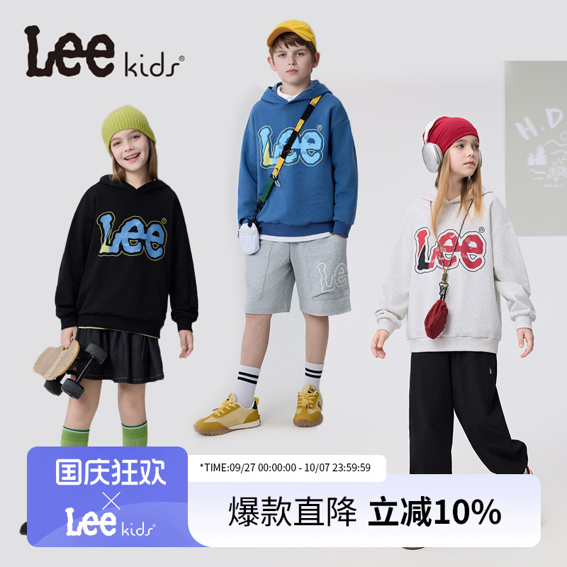 男女童美式字母印花连帽卫衣中大童秋冬儿童装上衣宽松百搭外套潮