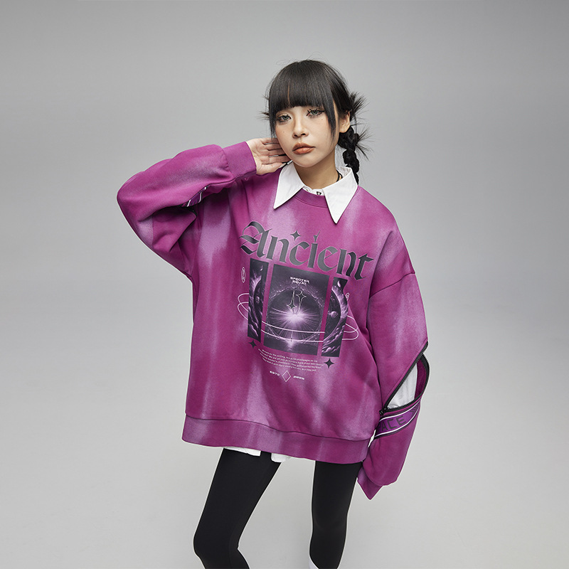 银狐绒美式休闲字母花卉印花连帽卫衣男女秋冬宽松加绒上衣薄外套