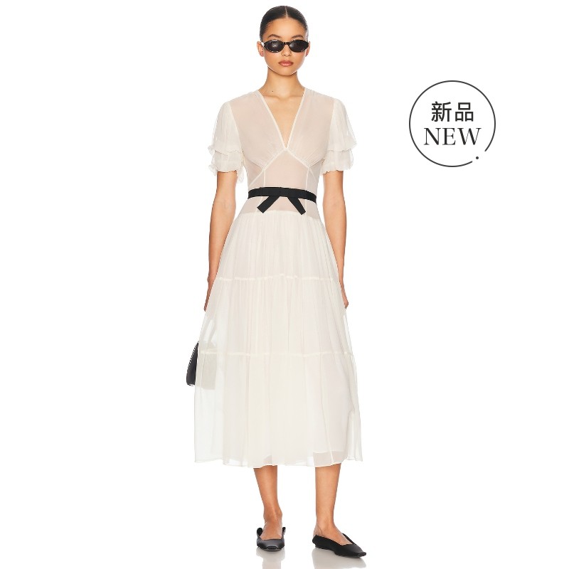 [冬季新品]Helsa 裙子 白色静奢风老钱风荷叶边雪纺连衣裙REVOLVE