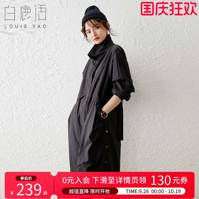 白鹿语气质系带立领外套25秋款黑色百搭时尚宽松休闲中长款风衣女