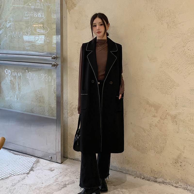 黑色毛呢大衣女中长款2023新款秋冬季宽松夹棉呢子西装外套加厚