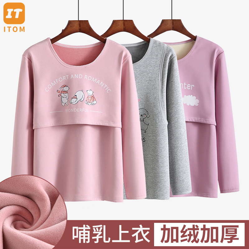 孕妇秋衣上衣哺乳保暖内衣女加绒加厚秋冬季打底衫产后喂奶衣单件
