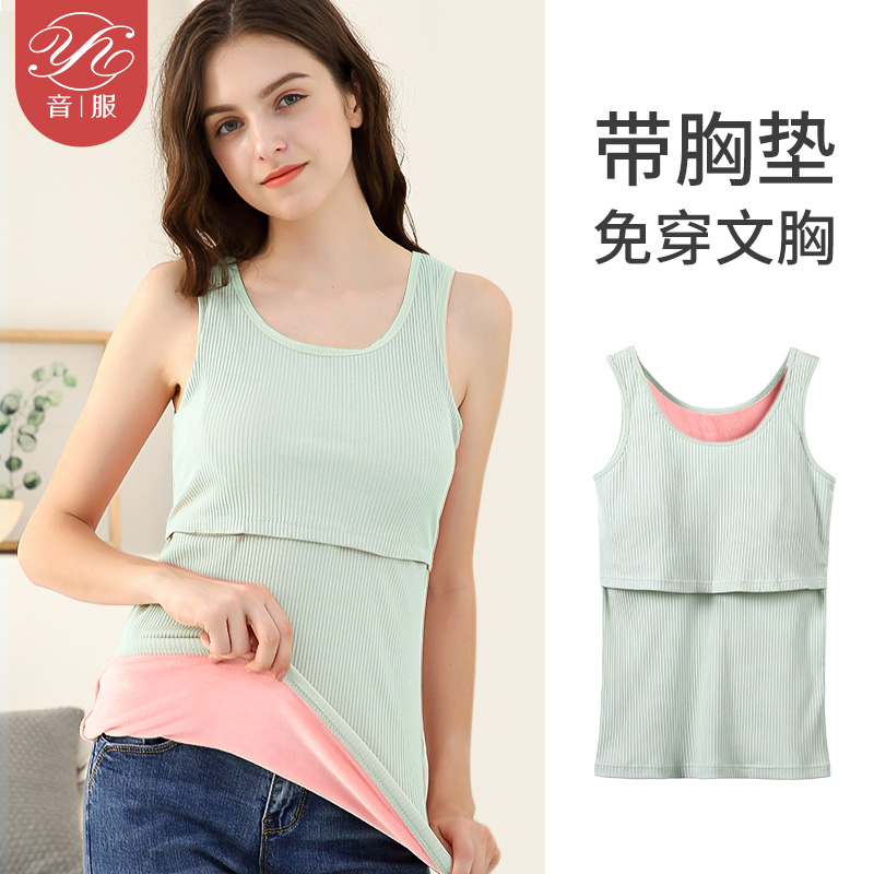 哺乳背心吊带孕妇产后内搭秋冬季德绒保暖加厚喂奶打底衫免穿文胸