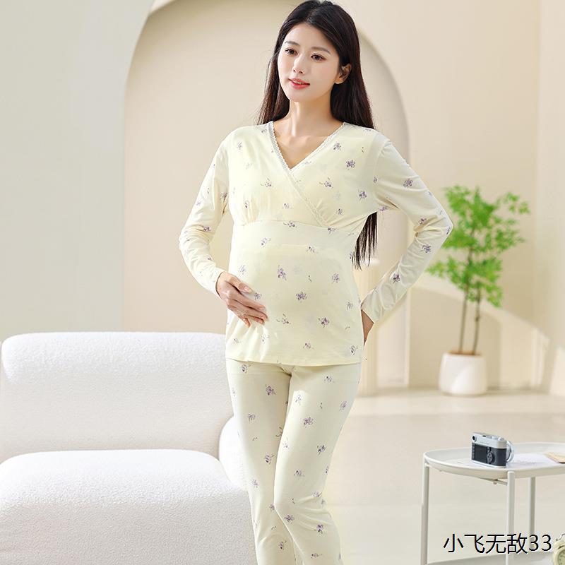 孕妇秋衣秋裤套装保暖内衣秋冬季哺乳睡衣产后打底衫不勒肚月子服