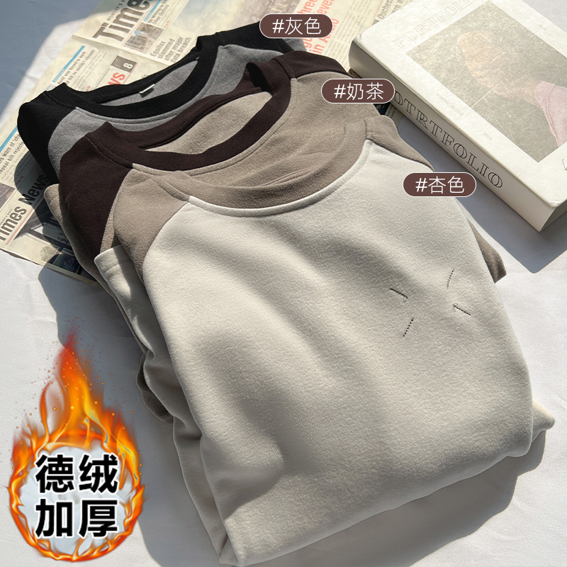 哺乳上衣秋冬季圆领加厚德绒长袖T恤辣妈款外出修身喂奶期打底衫