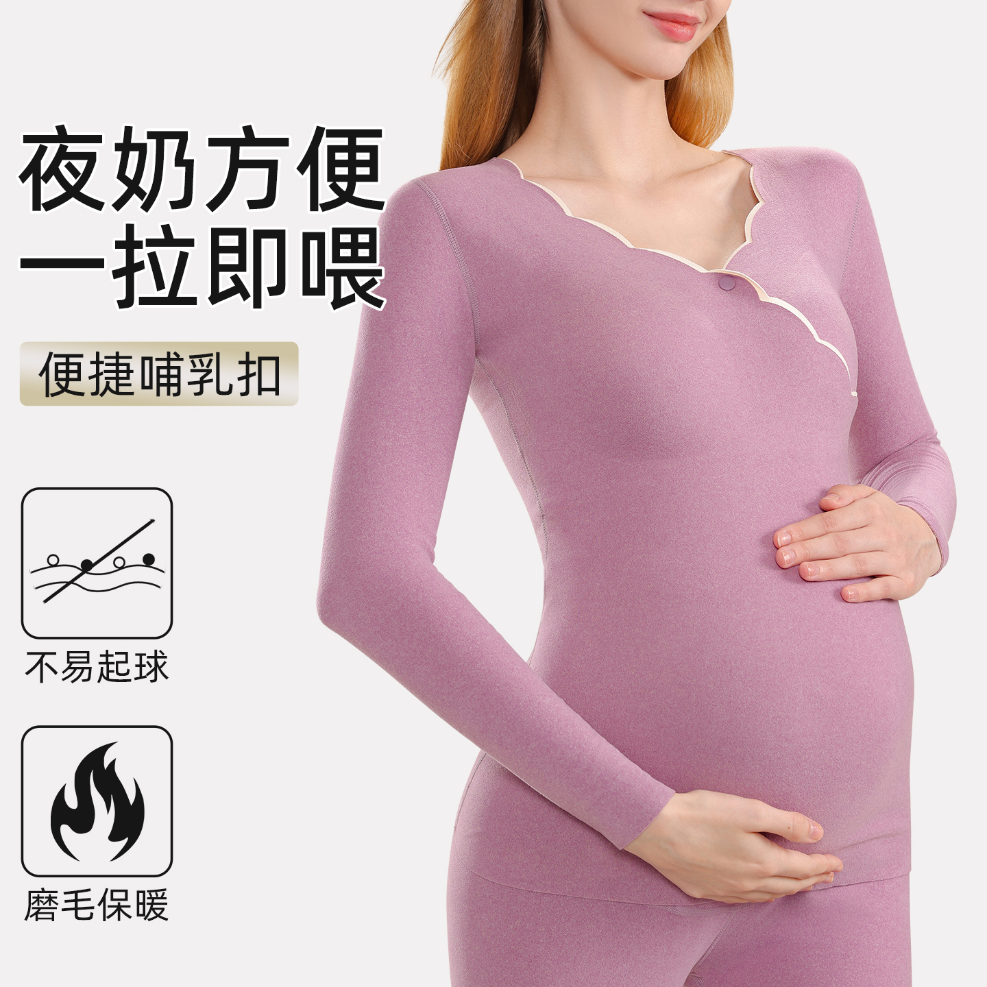 哺乳秋衣上衣德绒保暖内衣孕妇秋衣秋裤套装秋冬季打底衫带胸垫女