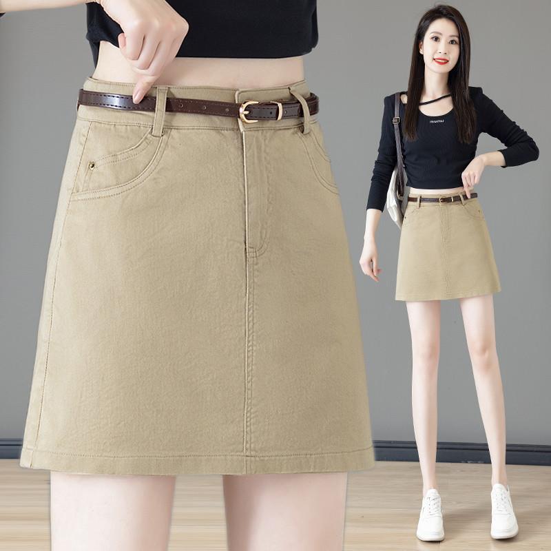 卡其色半身裙裤裙女春秋新款韩版高腰显瘦防走光a字裙包臀短裙子