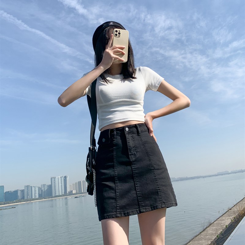 复古牛仔短裙女夏季2025新款高腰显瘦包臀A字裙百搭小个子半身裙