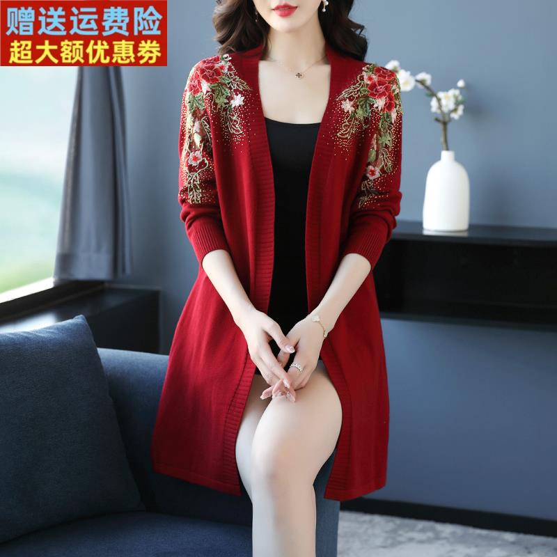 春秋针织开衫女中年妈妈宽松外搭毛衣大码中长款时尚羊毛披肩外套