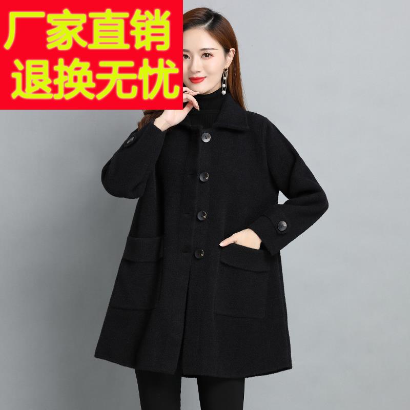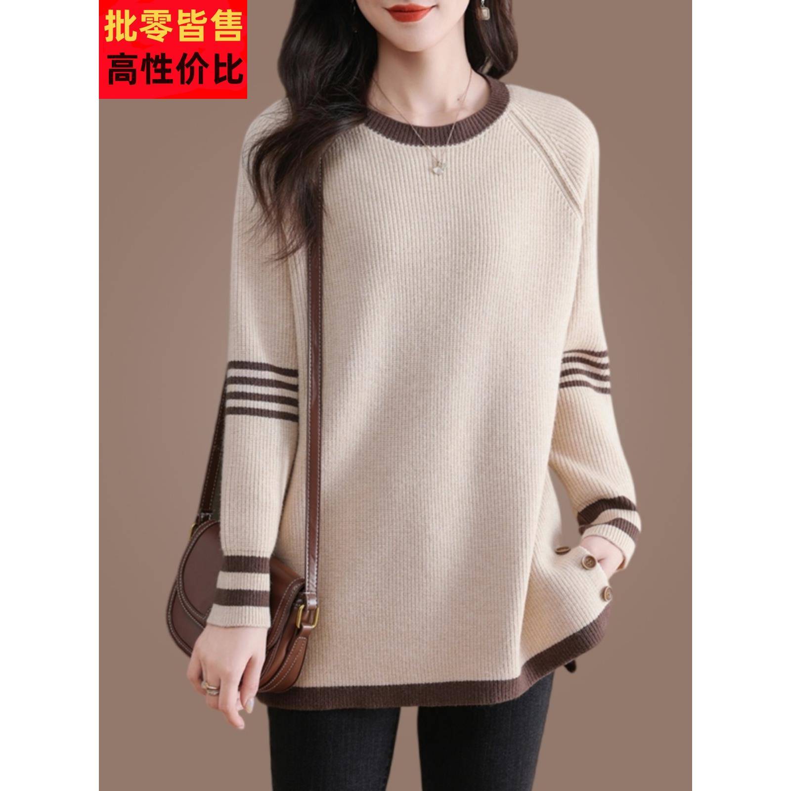 中年妈妈装羊绒衫女宽松大码秋冬新款针织羊毛打底加厚中长款毛衣