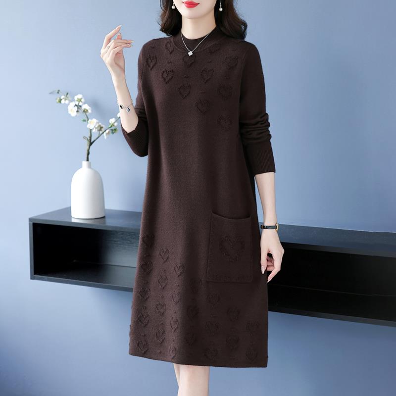 妈妈装毛衣加厚中长款羊毛衫遮肉中老年女装秋冬连衣裙加肥加大码