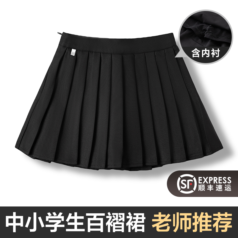 女童黑色百褶裙小女孩春夏装幼儿园半身裙子小学生学院风校服短裙