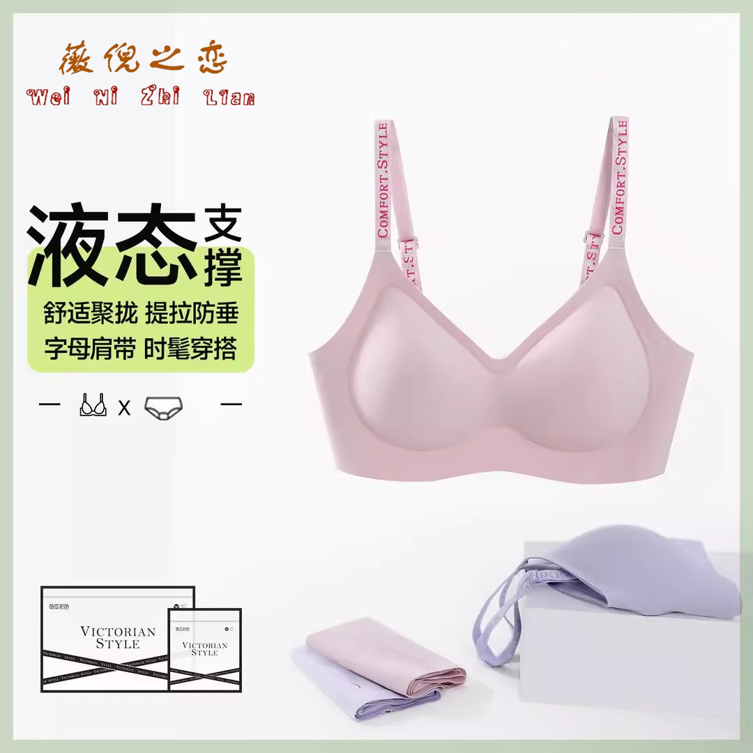 无痕软支撑反重力提拉果冻内衣女小胸聚拢承托防下垂抗菌文胸套装