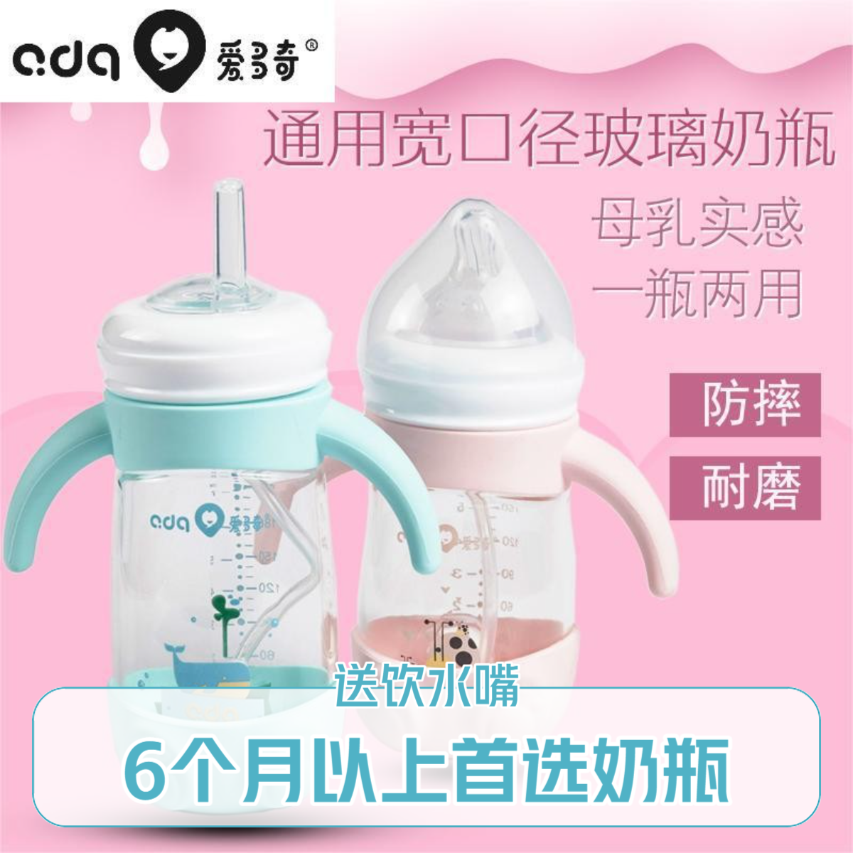 大宝宝玻璃奶瓶宽口径240 新生婴儿奶瓶手柄吸管6个月1-3岁防胀气
