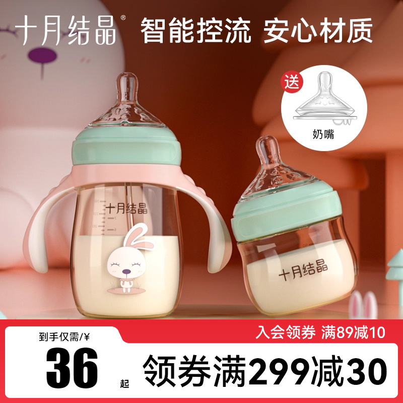十月结晶婴儿宽口径奶瓶PPSU新生儿吸管手柄防胀气仿母乳宝宝奶瓶