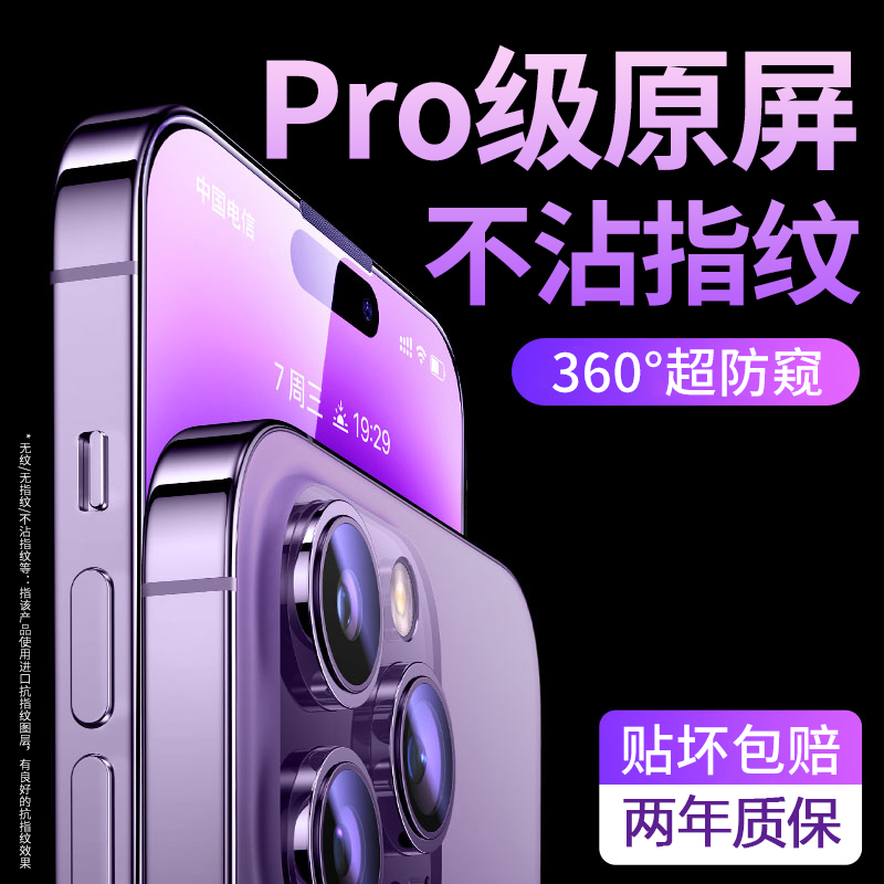 港巢适用苹果14promax钢化膜iphone14防偷窥14pro黑屏13摔2024新款11爆plus不沾指纹15高透超清12贴合防尘网