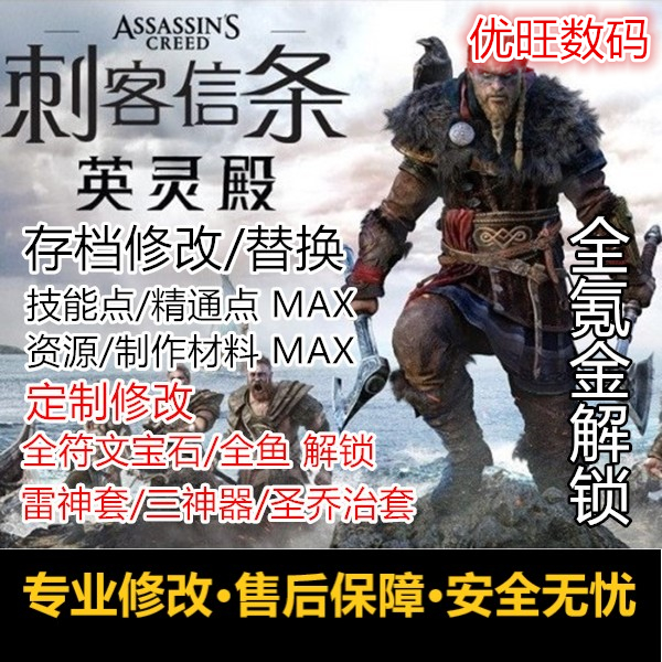 PS4 PS5 PC XBOX刺客信条英灵殿存档修改材料全符文全鱼氪金装备
