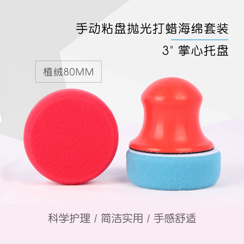 3寸汽车手工打蜡海绵抛光植绒自粘手柄玻璃内饰多功能打磨器托盘