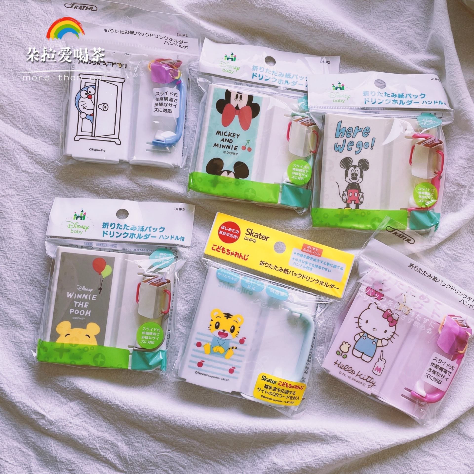 日本进口儿童牛奶杯防挤压饮料杯婴儿纸盒牛奶套杯带手柄饮品杯托