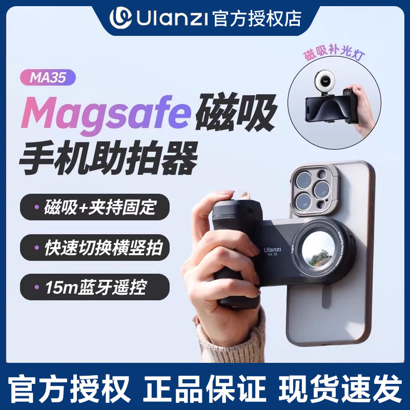 Ulanzi优篮子 MA35手机蓝牙磁吸助拍器横竖拍便携无线遥控稳定器拍照手柄摄影vlog自拍Magsafe磁吸支架